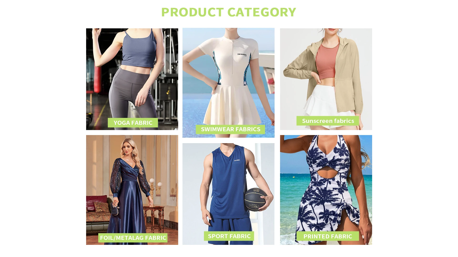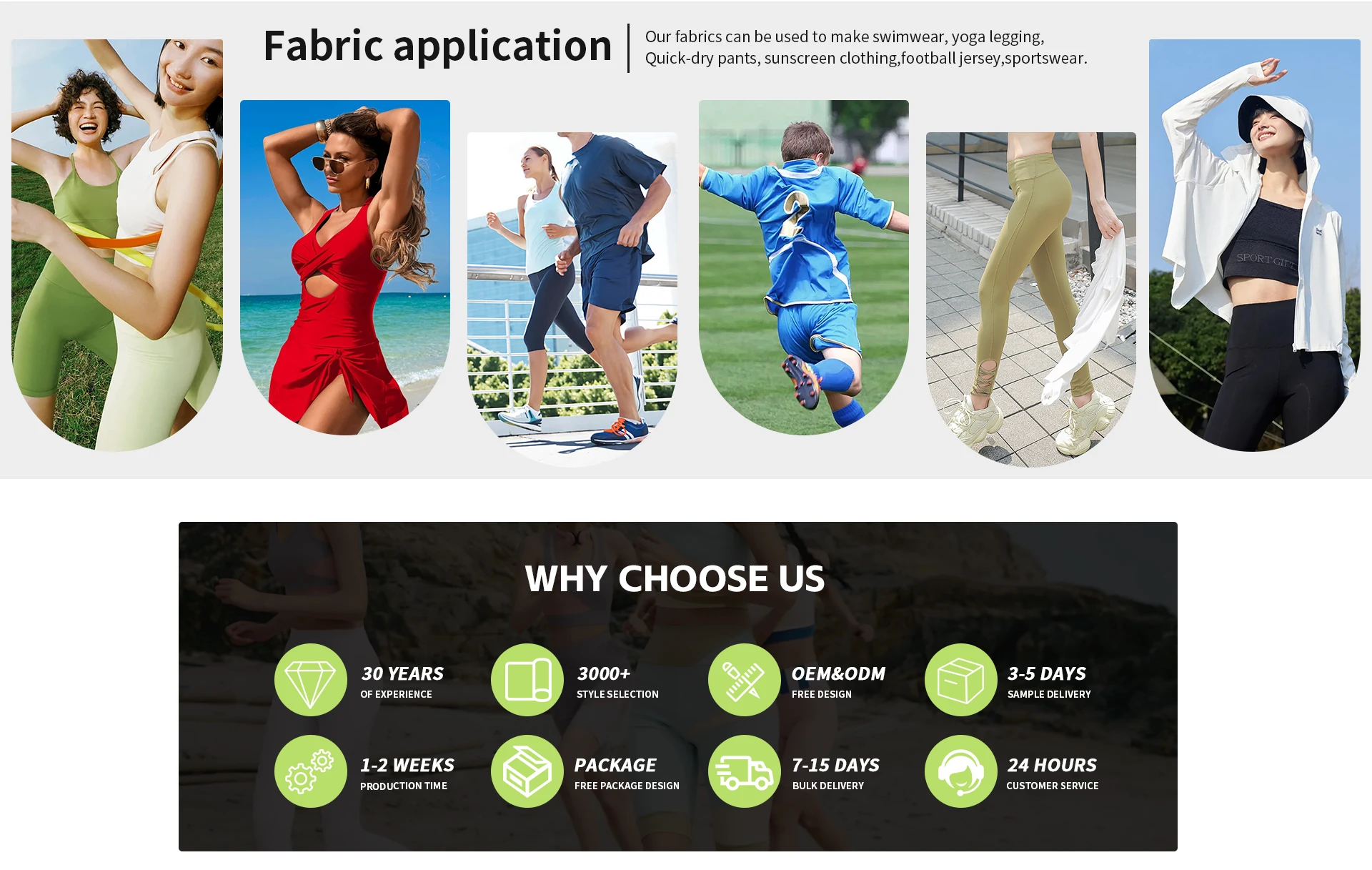 Productos principales:Tela de traje de baño, tela de yoga, tela deportiva, tela estampada, tela metalag